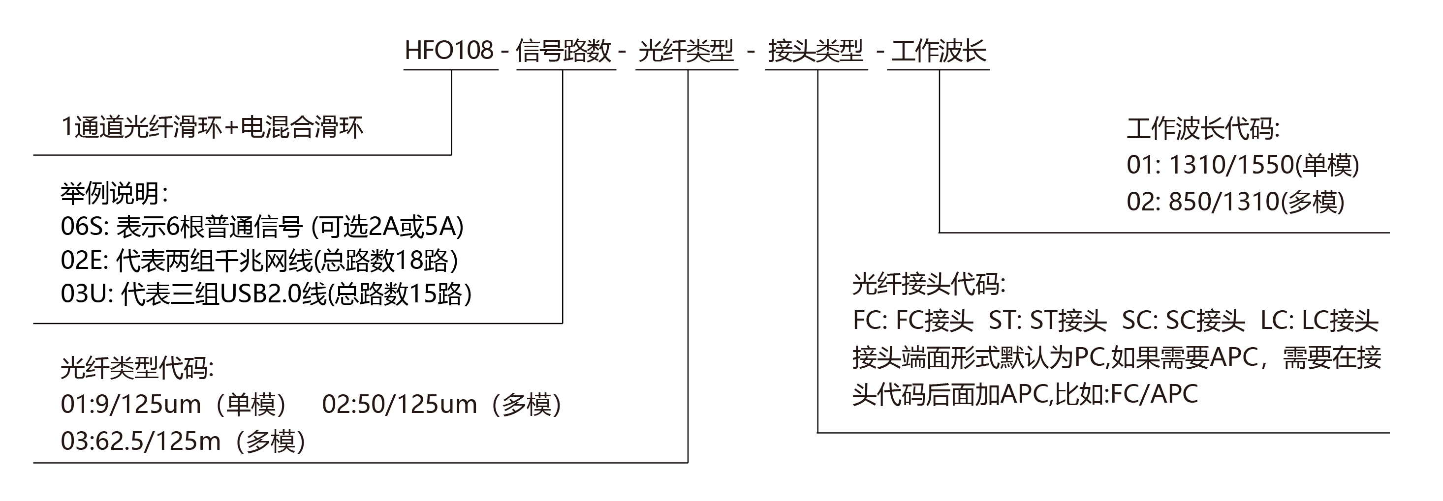 | HFO108-1路光+電滑環(huán)選型表 | ||||