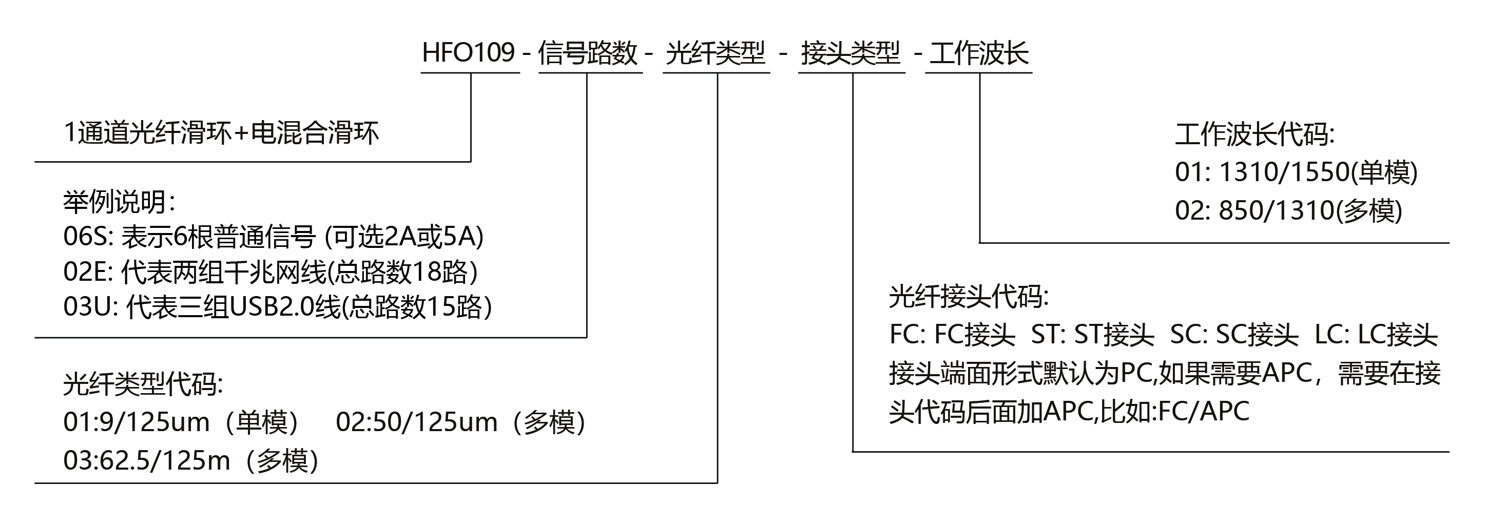HFO109 - 1路光+電滑環(huán)選型表 | |||||||||